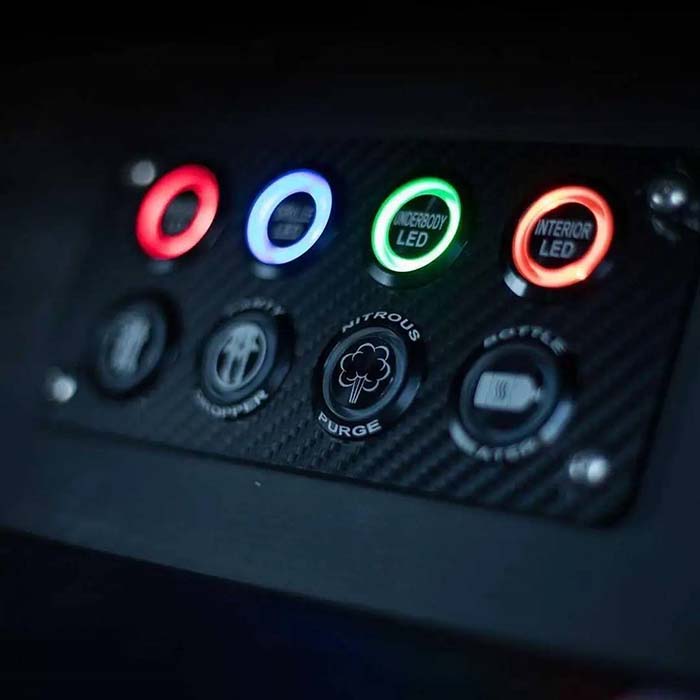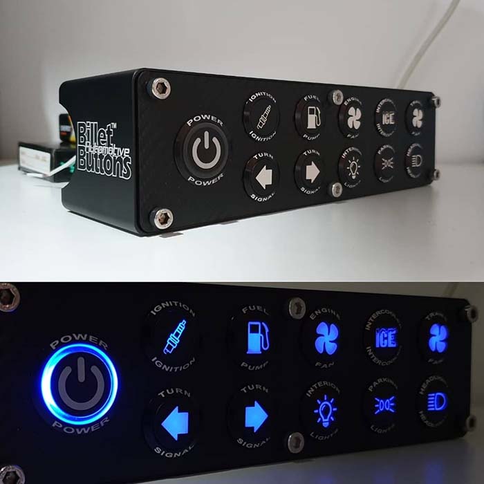 Our Stainless Steel Buttons shown here are the standout choice for looks, their sleek stainless finish adds a premium, professional look to any dash.