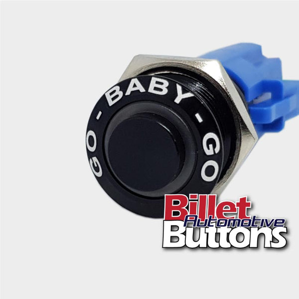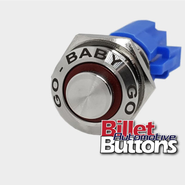 16mm 'GO BABY GO' Push Button Switch Raised Top LED Small