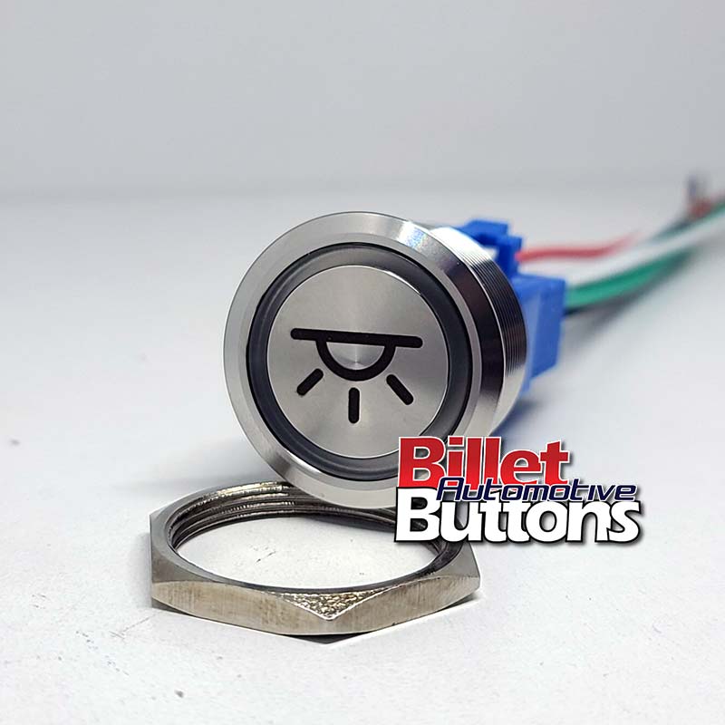 Made to order laser etched billet buttons are fitted with an LED that can be wired so that it is active when the button is pushed in or when the headlights or ignition are on. All the 28mm billet buttons have an IP67 water and dust resistant rating. These are suitable for many applications such as cars, marine and motor homes etc. *I recommend running a relay with these buttons on any high draw accessories as they are rated at 5A.