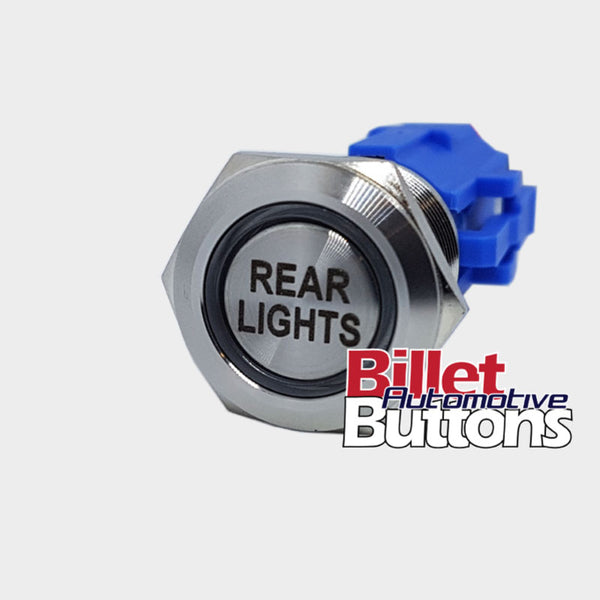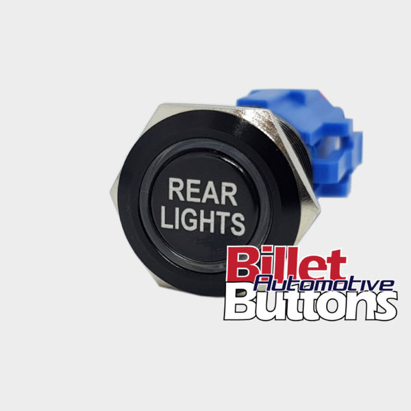 19mm 'REAR LIGHTS' Billet Push Button Switch