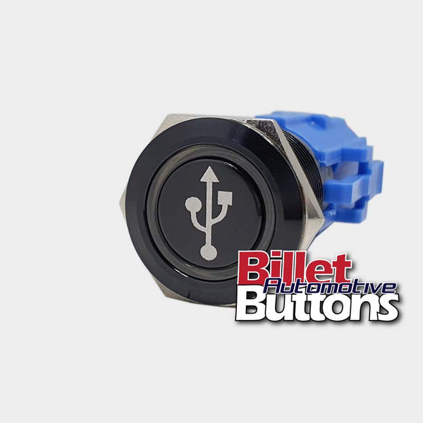 19mm 'USB SYMBOL' Billet Push Button Switch Outlet 4x4