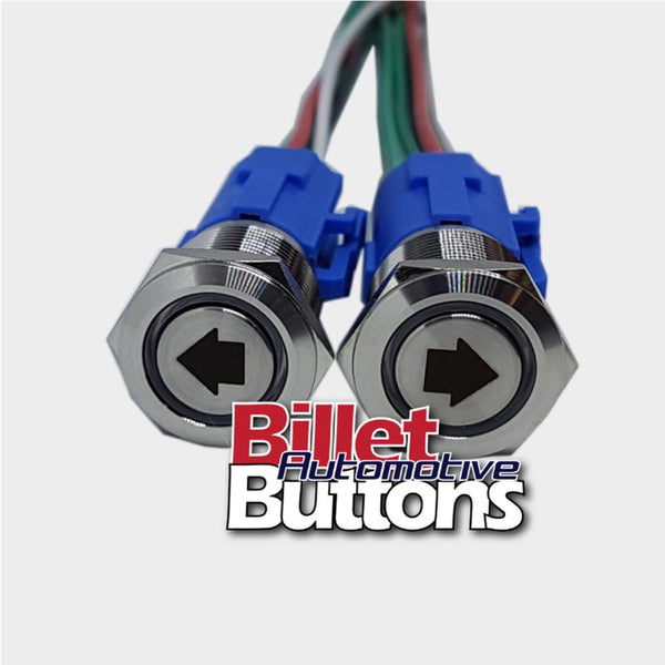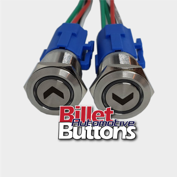 19mm Pair 'ARROW SYMBOLS' Billet Push Buttons Switches Power Windows Turn Signals etc