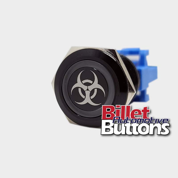 22mm 'BIO HAZARD SYMBOL' Billet Push Button Switch Biohazard
