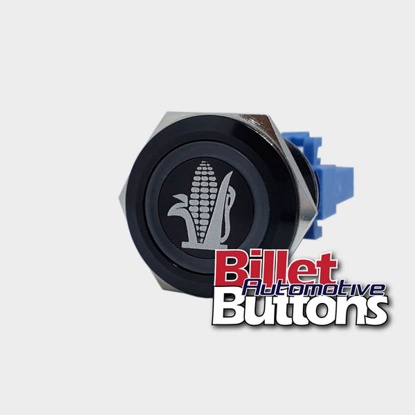 22mm 'FUEL BOWSER E85 SYMBOL' Billet Push Button Switch Fuel Pump Corn
