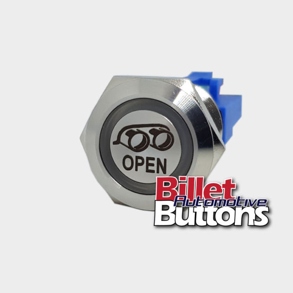 22mm 'EXHAUST OPEN SYMBOL' Billet Push Button Switch Electric Solenoid Muffler Cutout Bi-modal