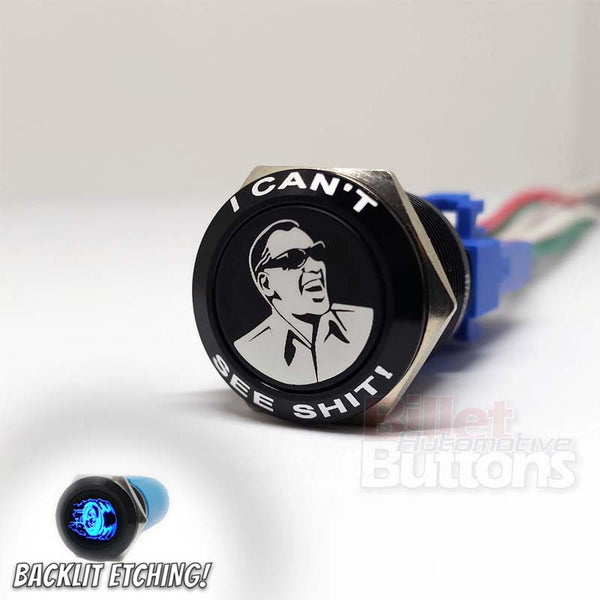 22mm FEATURED 'I CAN'T SEE SHIT SYMBOL' Billet Push Button Switch Ray Charles Stevie Wonder