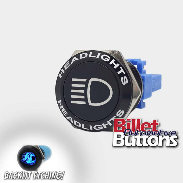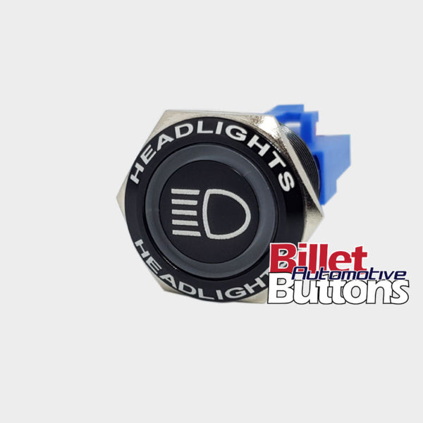 22mm FEATURED 'HEADLIGHTS SYMBOL' Billet Push Button Switch High Beam etc