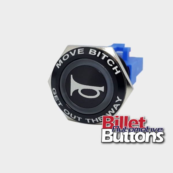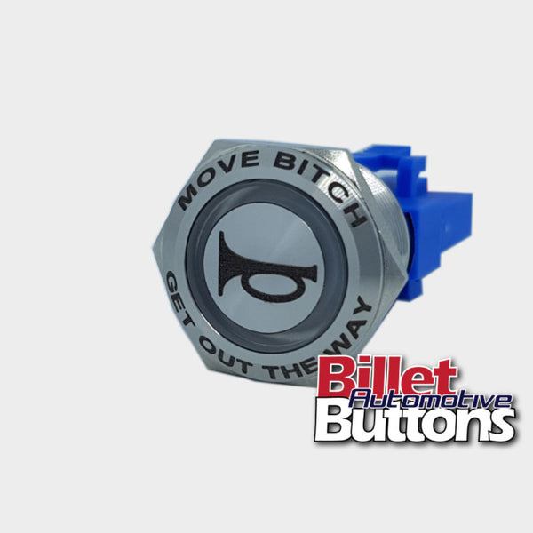 22mm FEATURED 'HORN SYMBOL' Billet Push Button Switch Move Bitch