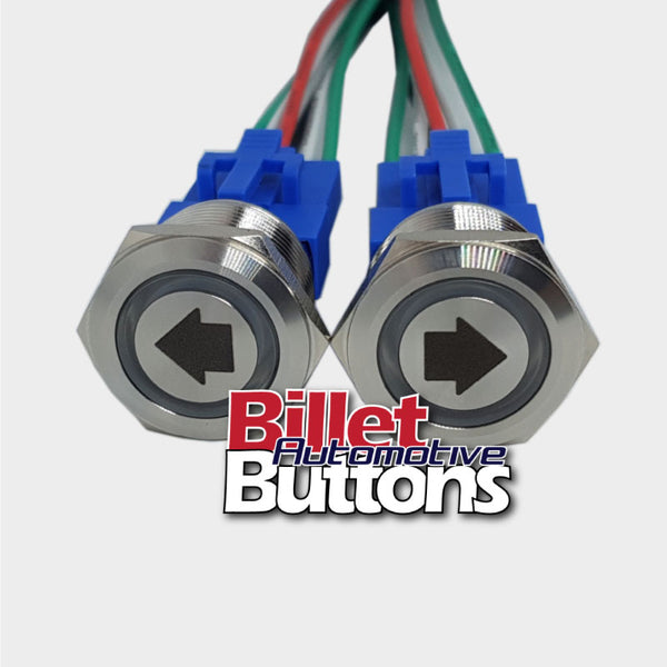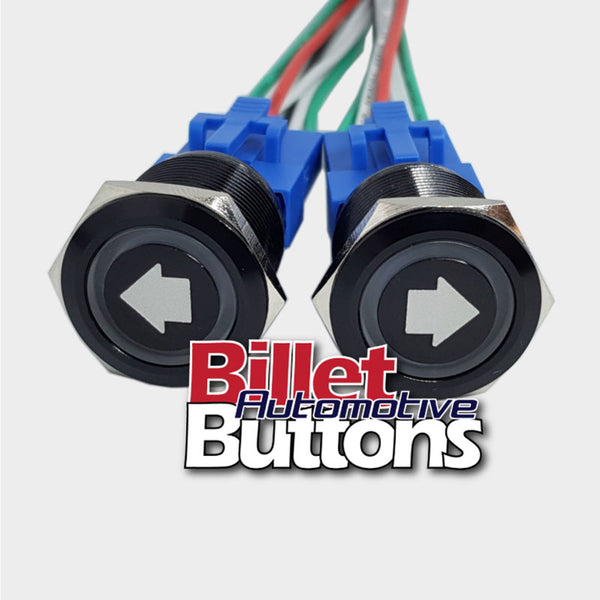 22mm Pair 'ARROW SYMBOLS' Billet Push Buttons Switches Power Windows Turn Signals etc