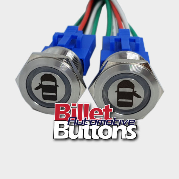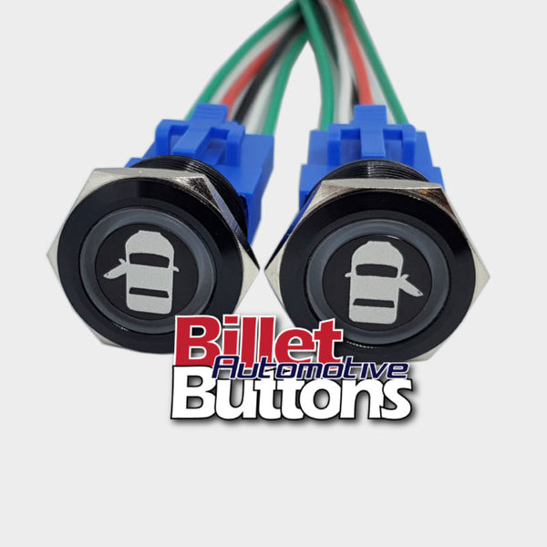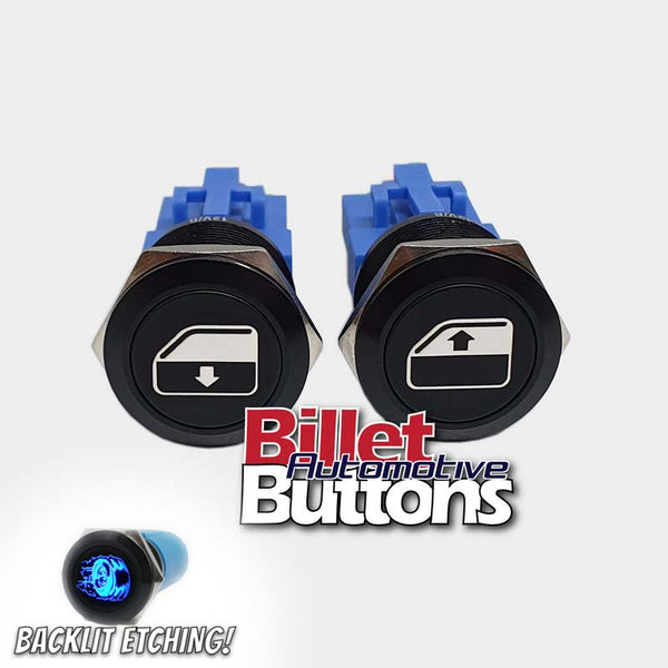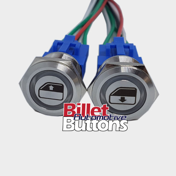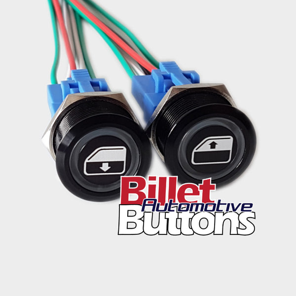 22mm Pair 'POWER WINDOWS SYMBOLS' Billet Push Button Switches