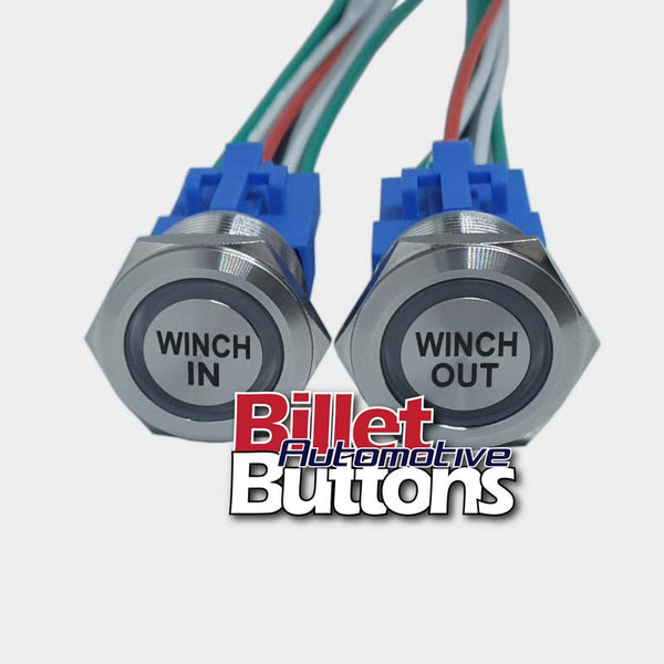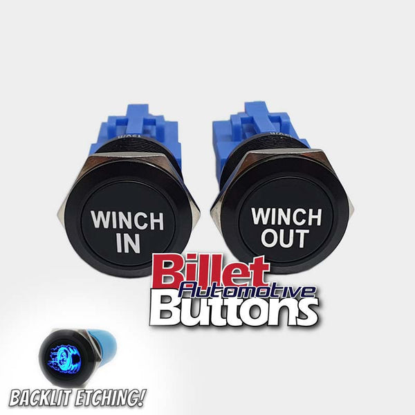 22mm Pair 'WINCH IN/OUT' Billet Push Button Switches