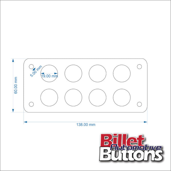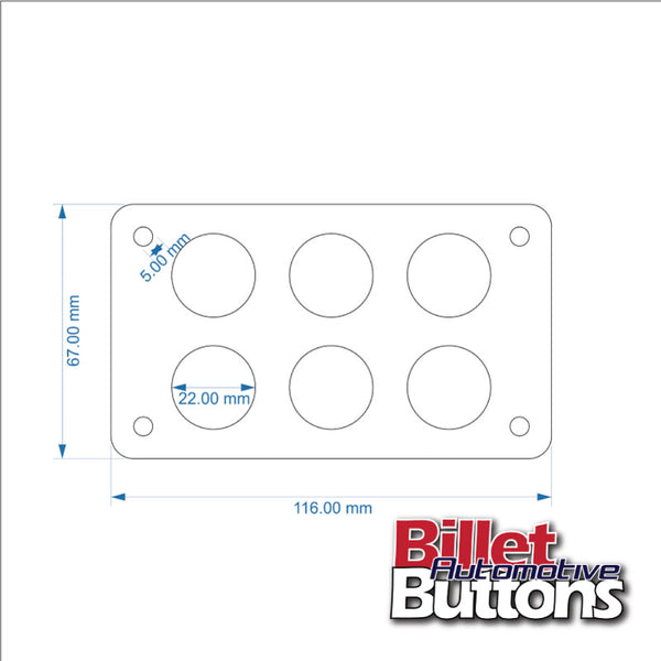 Billet Button 2 hole laser cut aluminium panel for power windows etc