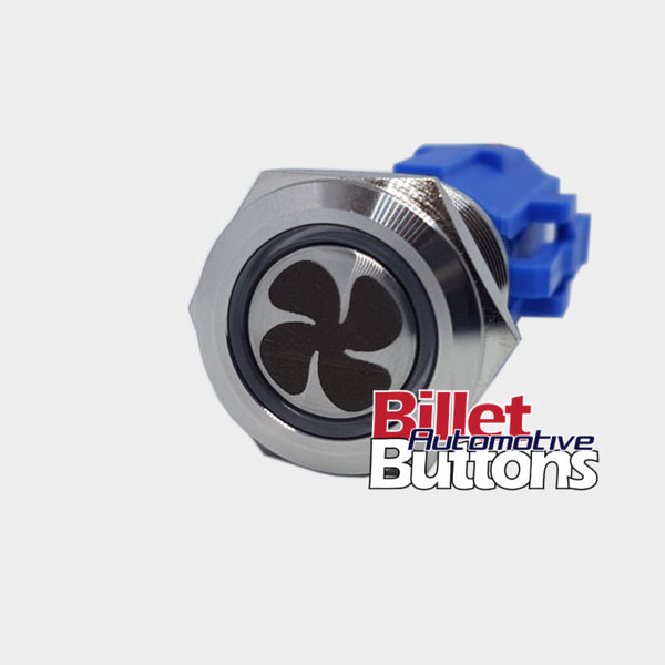 19mm 'FAN SYMBOL' Billet Push Button Switch Thermo Trans Oil Cooler Fan Etc