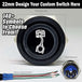 Design your own laser etched button here you can choose custom text or upload a symbol or logo. You can also add custom outer text to bezel for an additional charge. Please keep in mind the button generator is to help me know what you are after more than anything, the custom text spacing is different to what the actual text spacing is on the buttons.