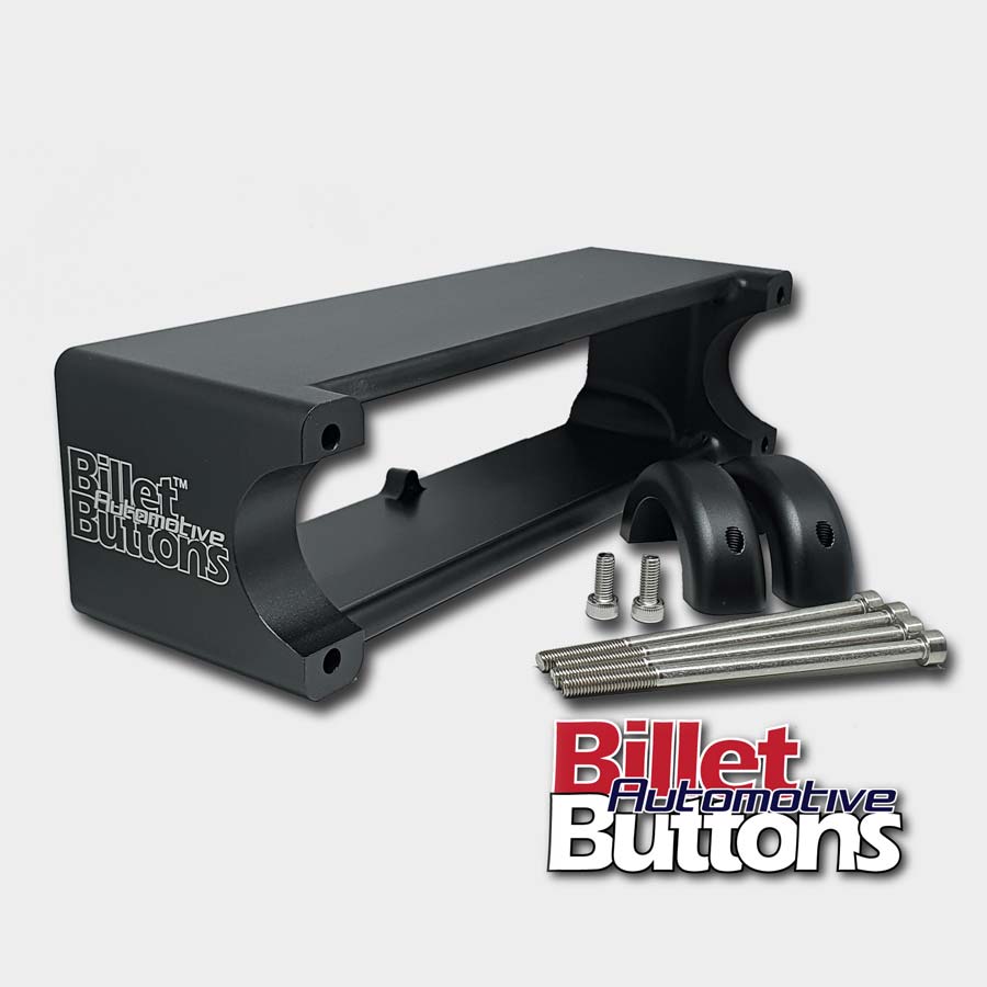 Billet aluminium boxes designed to bolt to roll cage bar these are anodized black and thoughtfully designed in house as a great universal box to house various switches. We have a few generic popular face plate designs listed and we can also laser cut one to suit your needs they can fit a maximium of 12x 22mm buttons. We have three designs for the most common bar sizes 1 1/2" (38mm), 1 5/8" (42mm) and 1 3/4" (45mm). Boxes will have my logo on either end of the box like pictured! Switches sold separate!